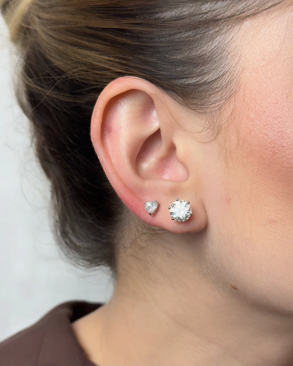 Versátil e elegante, o brinco solitário em moissanite combina com qualquer look — do casual ao sofisticado. Pode ser usado sozinho para um visual clássico ou em combinações com outros piercings e brincos menores para uma proposta mais moderna.