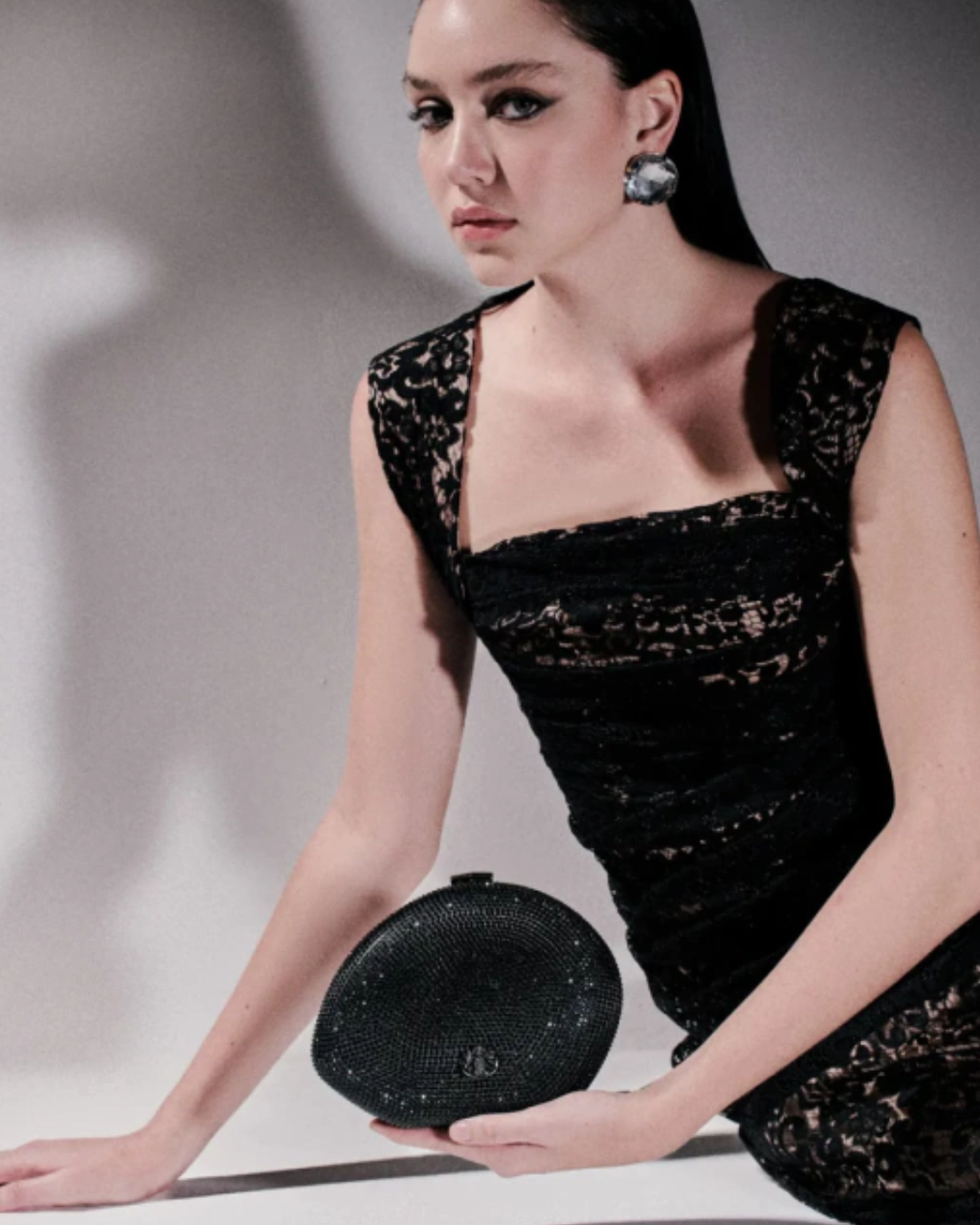 Com um design orgânico e abstrato, a Clutch Cristais se destaca por suas curvas fluidas e contemporâneas. O exterior é totalmente adornado com cristais, conferindo uma textura sofisticada, enquanto o interior forrado em veludo acrescenta um toque de luxo. Versátil, pode ser utilizada com a alça snake removível, podendo ser levada no ombro ou como clutch de mão. Seu fechamento magnético garante praticidade e segurança. Perfeita para eventos especiais, como casamentos, festas de 15 anos e coquetéis, essa peça irradia glamour e elegância.