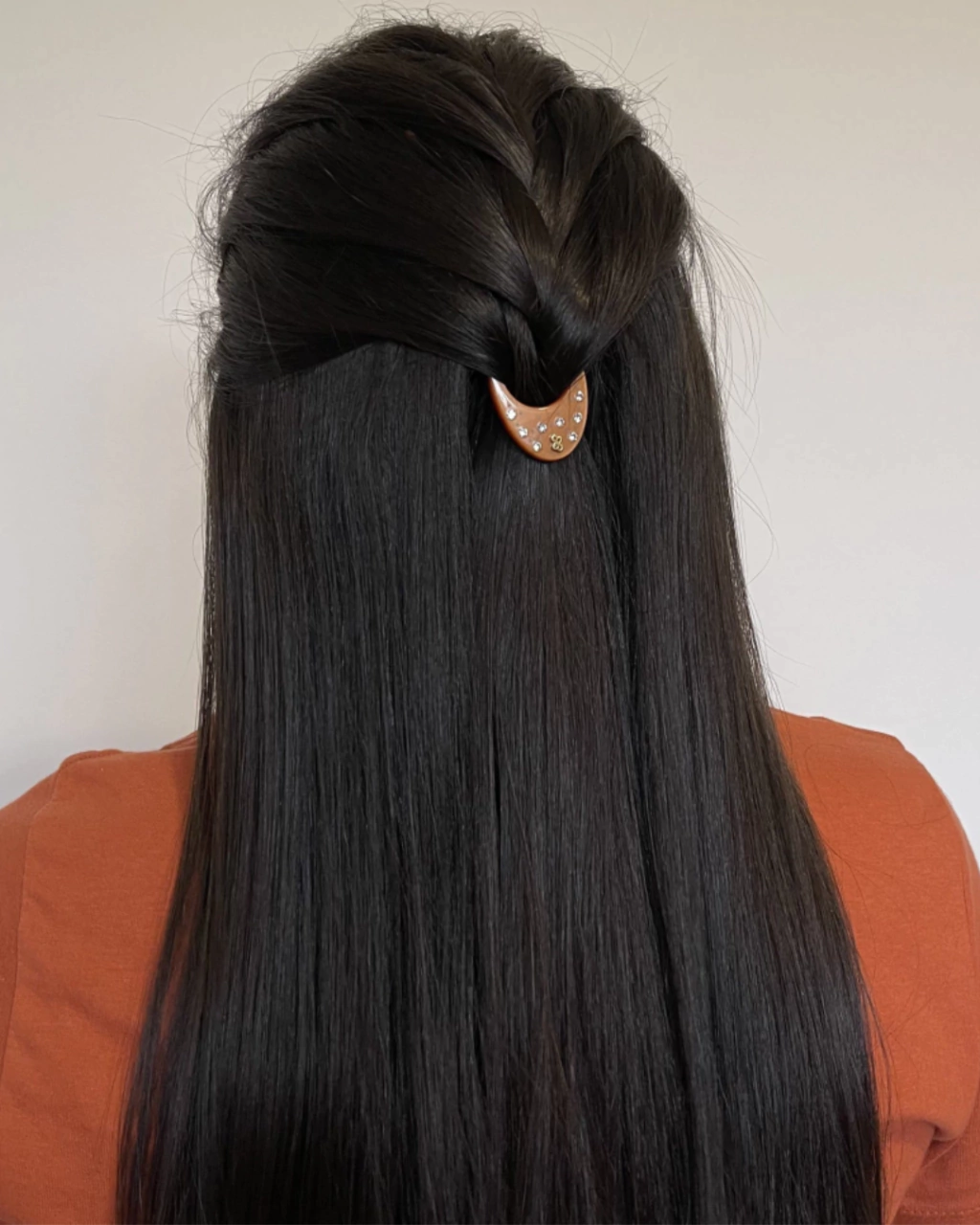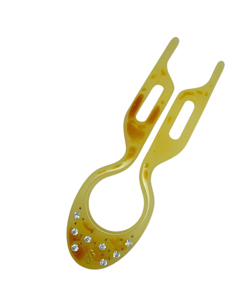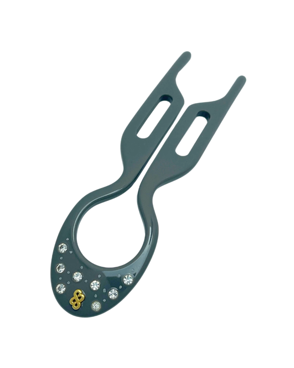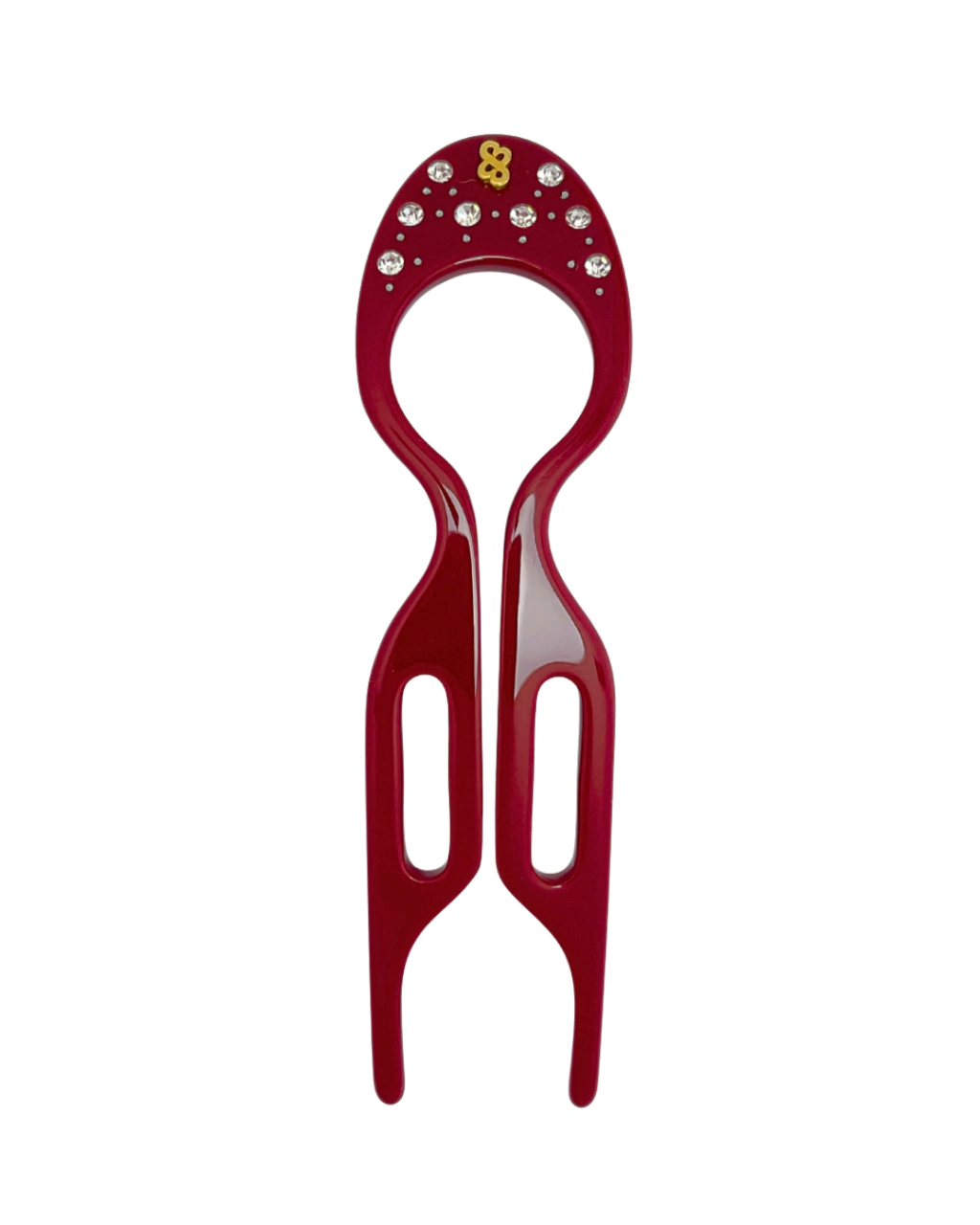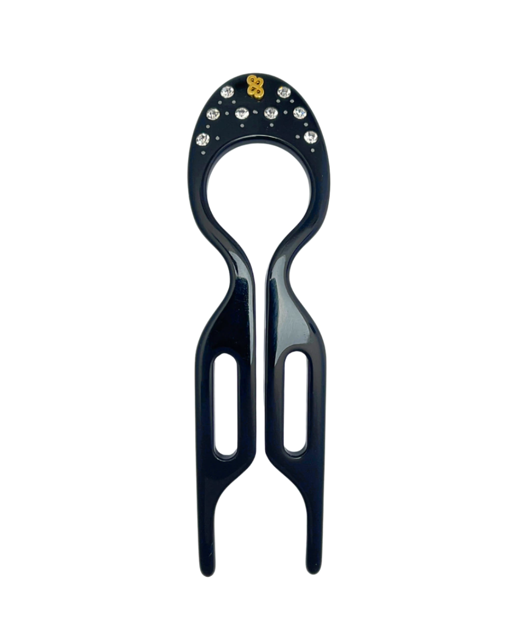 O "Hair Pin Strass Bianca Vintage" é uma peça única no mercado, destacada por 15 pontos em baixo relevo e 8 strass cravejados que garantem aderência sem repuxar os fios. Projetado com três tamanhos para diferentes volumes e curvaturas de cabelo, ele é mais forte e seguro que grampos comuns, prevenindo escorregões. É um produto artesanal 100% nacional da Bianca Accessory®, marca tradicional com fábrica no Brasil desde 1990. Produzido em acrílico premium (de alta qualidade, resistente e à prova d'água), possui um logo banhado a ouro 18k e é polido por 96 horas para um acabamento impecável de alto brilho. O design inclui hastes flexíveis, formato curvo para conforto e uma trava robusta, protegendo o penteado o dia todo. O material antiestático não conduz eletricidade, prevenindo fios arrepiados e quebradiços. As bordas arredondadas garantem um uso confortável, indolor e sem danos ao cabelo. É um grampo mágico para seu cabelo!