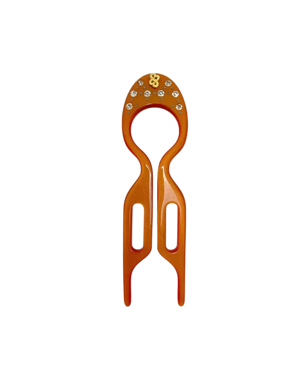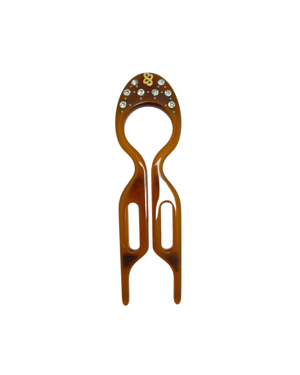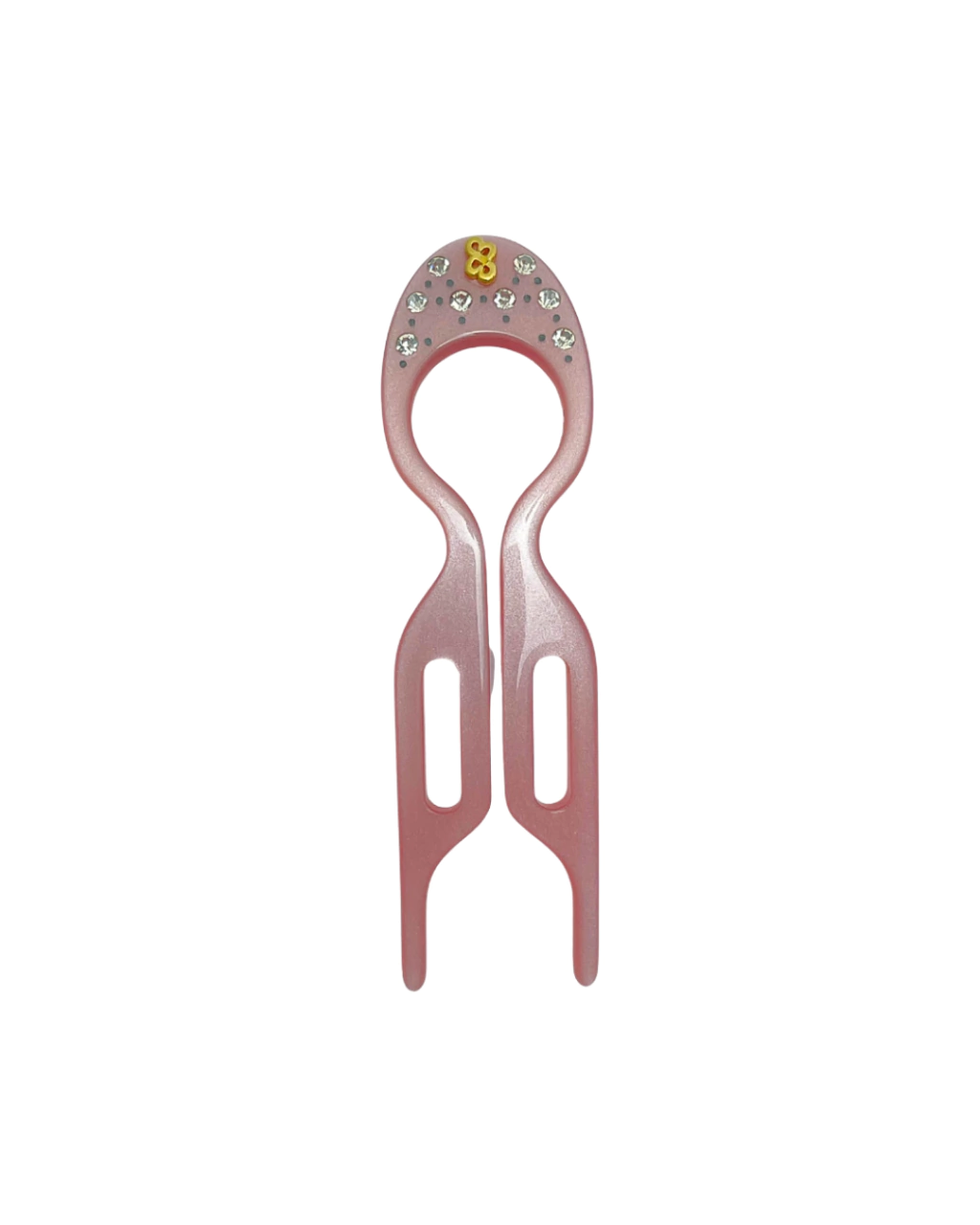 O "Hair Pin Strass Bianca Vintage" é uma peça única no mercado, destacada por 15 pontos em baixo relevo e 8 strass cravejados que garantem aderência sem repuxar os fios. Projetado com três tamanhos para diferentes volumes e curvaturas de cabelo, ele é mais forte e seguro que grampos comuns, prevenindo escorregões. É um produto artesanal 100% nacional da Bianca Accessory®, marca tradicional com fábrica no Brasil desde 1990. Produzido em acrílico premium (de alta qualidade, resistente e à prova d'água), possui um logo banhado a ouro 18k e é polido por 96 horas para um acabamento impecável de alto brilho. O design inclui hastes flexíveis, formato curvo para conforto e uma trava robusta, protegendo o penteado o dia todo. O material antiestático não conduz eletricidade, prevenindo fios arrepiados e quebradiços. As bordas arredondadas garantem um uso confortável, indolor e sem danos ao cabelo. É um grampo mágico para seu cabelo!