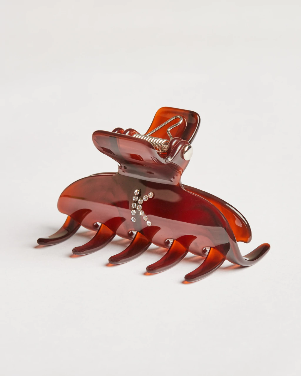 O Prendedor Iniciais da Bianca Accessory possui pontos de cristais tchecos e um design que não repuxa os fios. Produzido artesanalmente no Brasil desde 1990, é feito de acrílico de alta qualidade, logo banhado a ouro 18k e polido por 96 horas para um acabamento impecável de alto brilho.