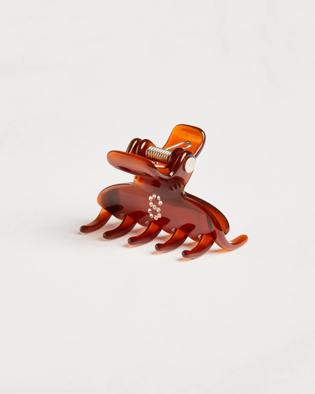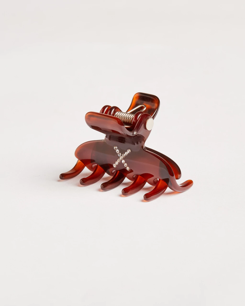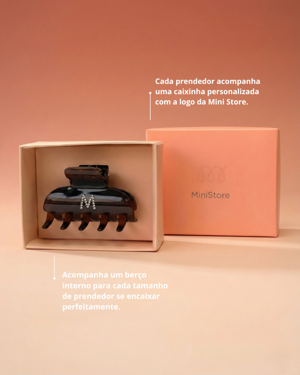 O Prendedor Iniciais da Bianca Accessory possui pontos de cristais tchecos e um design que não repuxa os fios. Produzido artesanalmente no Brasil desde 1990, é feito de acrílico de alta qualidade, logo banhado a ouro 18k e polido por 96 horas para um acabamento impecável de alto brilho.