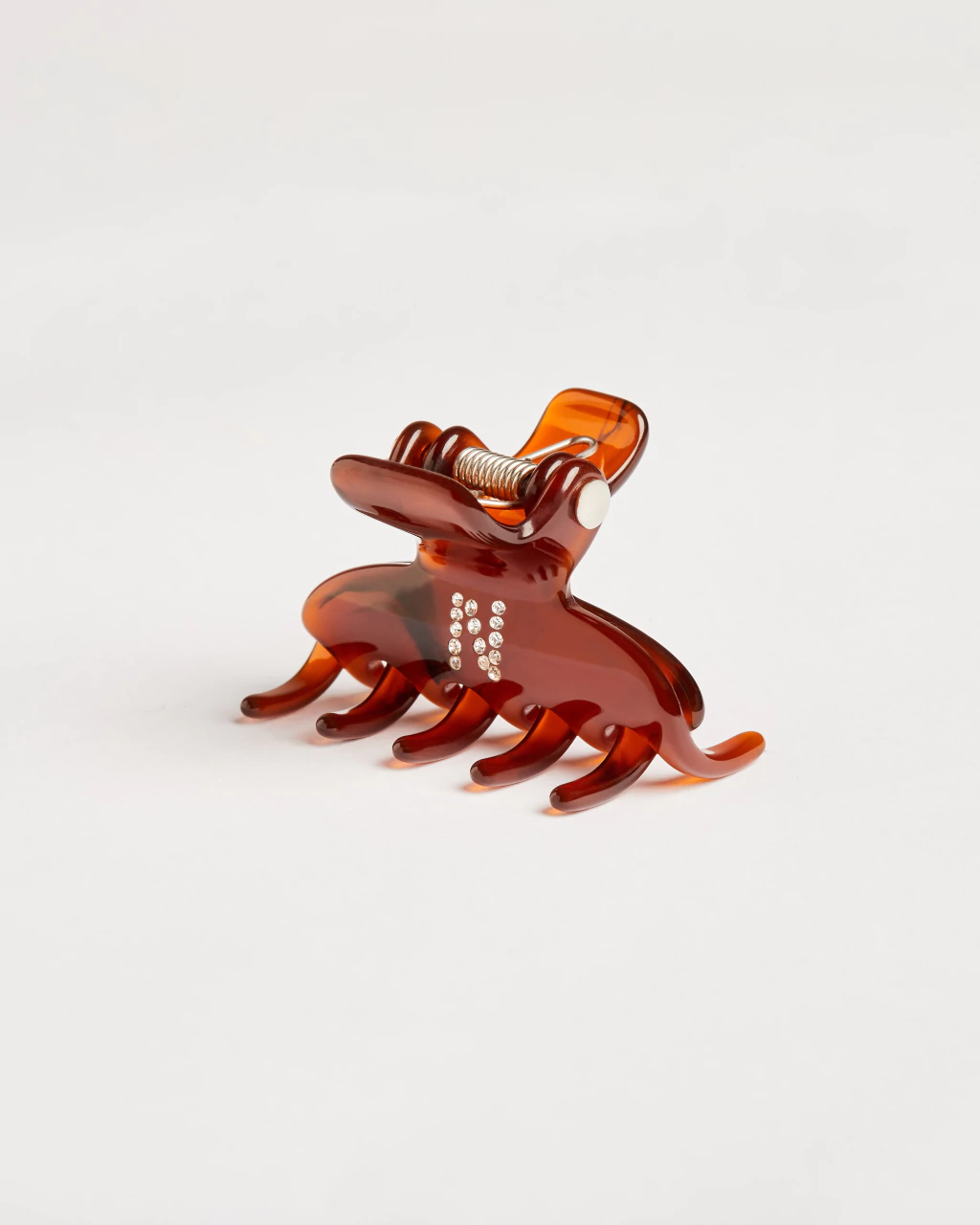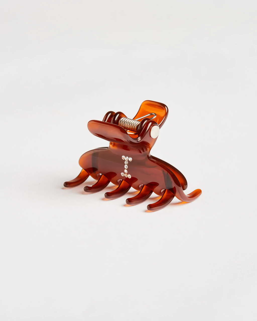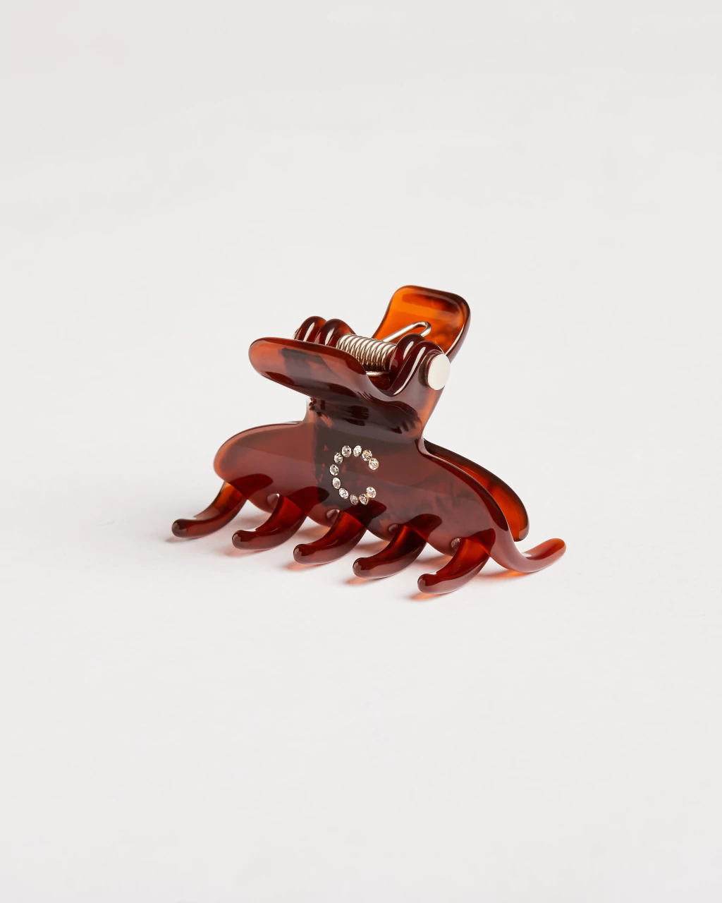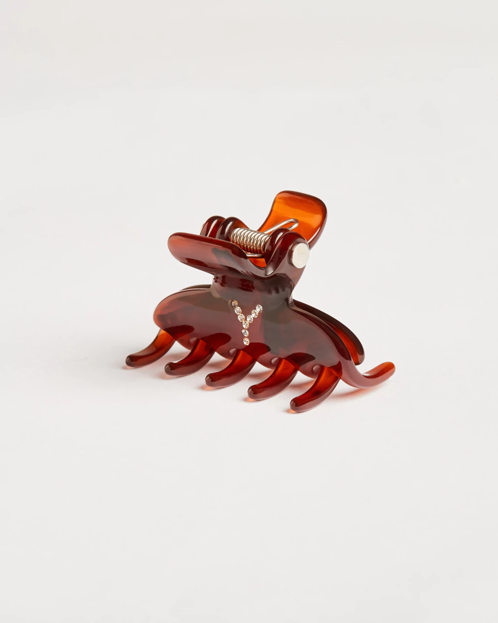 O Prendedor Iniciais da Bianca Accessory possui pontos de cristais tchecos e um design que não repuxa os fios. Produzido artesanalmente no Brasil desde 1990, é feito de acrílico de alta qualidade, logo banhado a ouro 18k e polido por 96 horas para um acabamento impecável de alto brilho.
